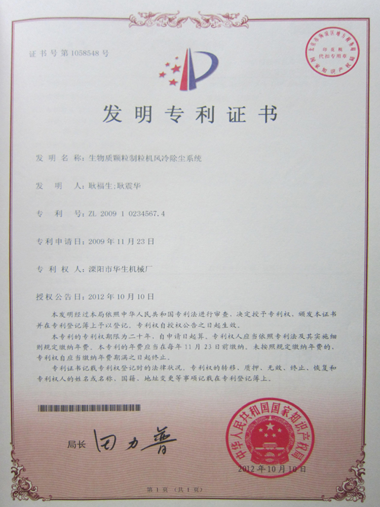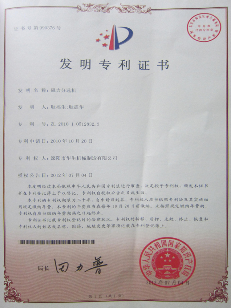 • National patent certificate